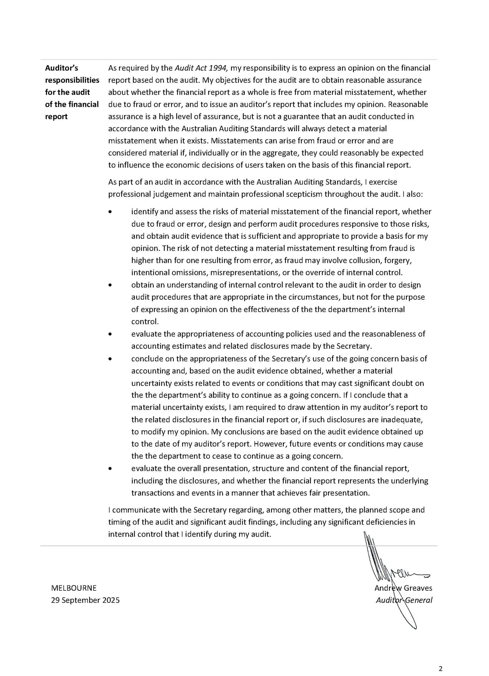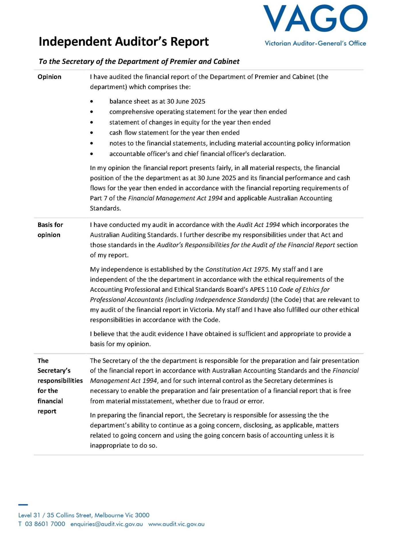 Independent audit report