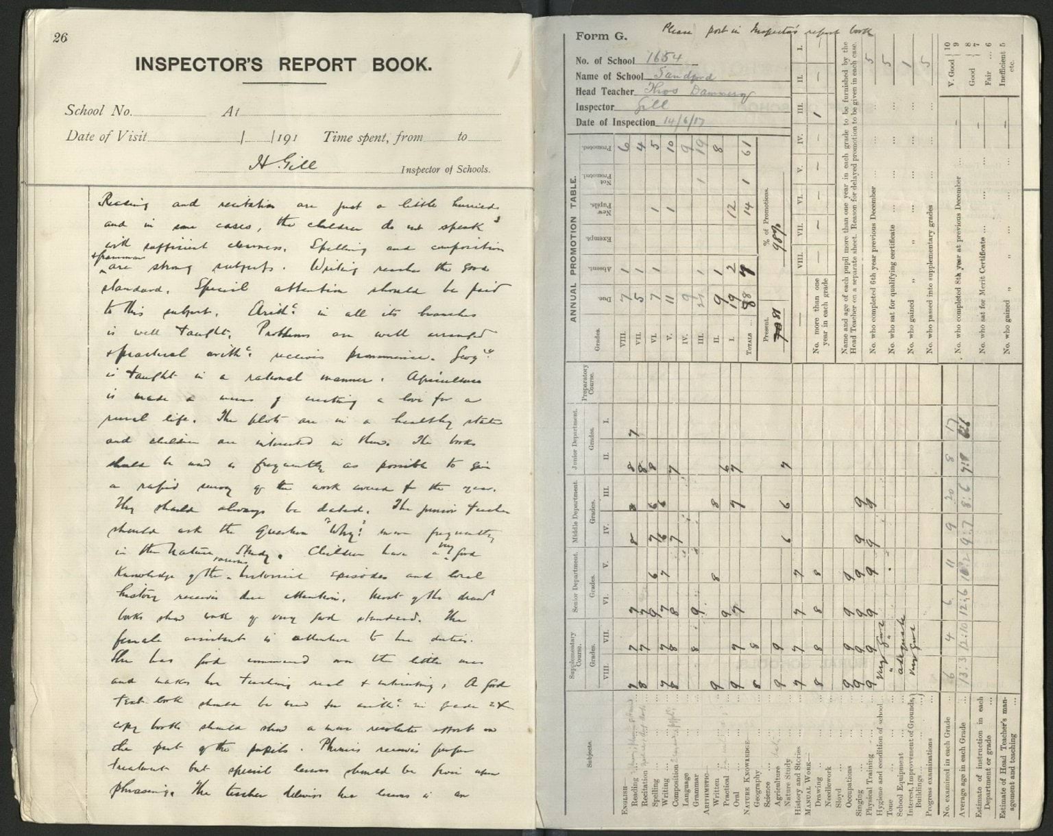 Sanford Primary School Inspectors Report Book page 26 from 1917