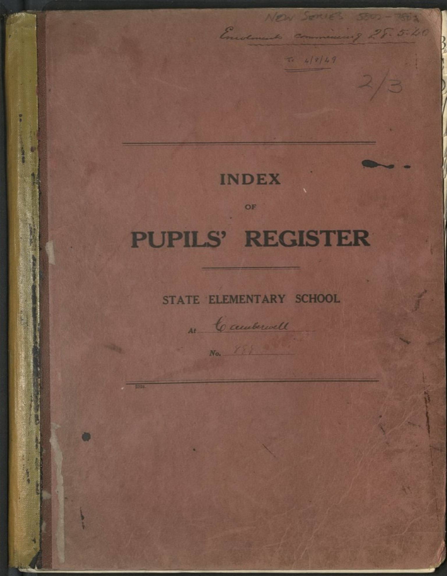 Cover of Camberwell Primary School Pupil Register 1925-1949