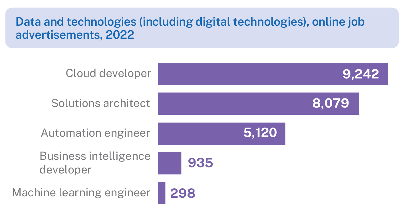 - Demand for advanced digital skills has been growing, particularly for artificial intelligence (AI) skills, data analysis, computer science and cybersecurity.